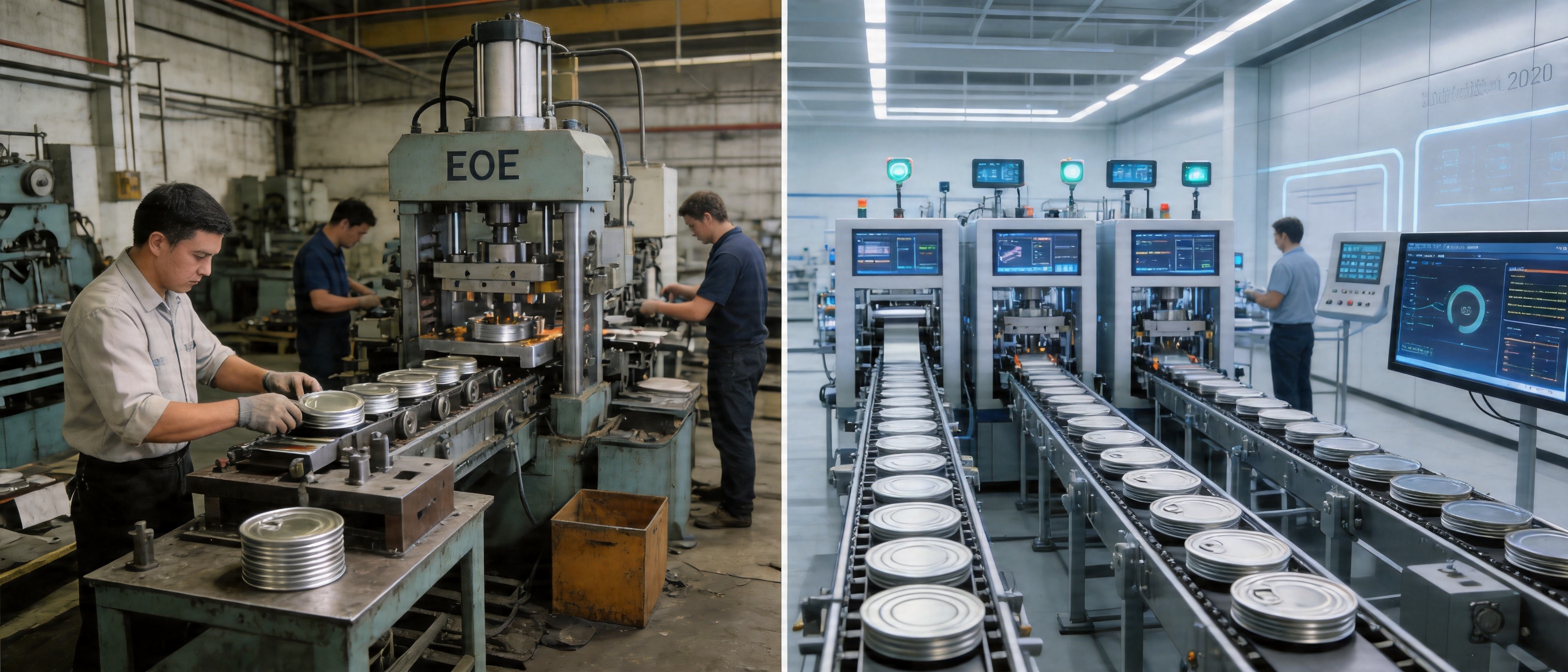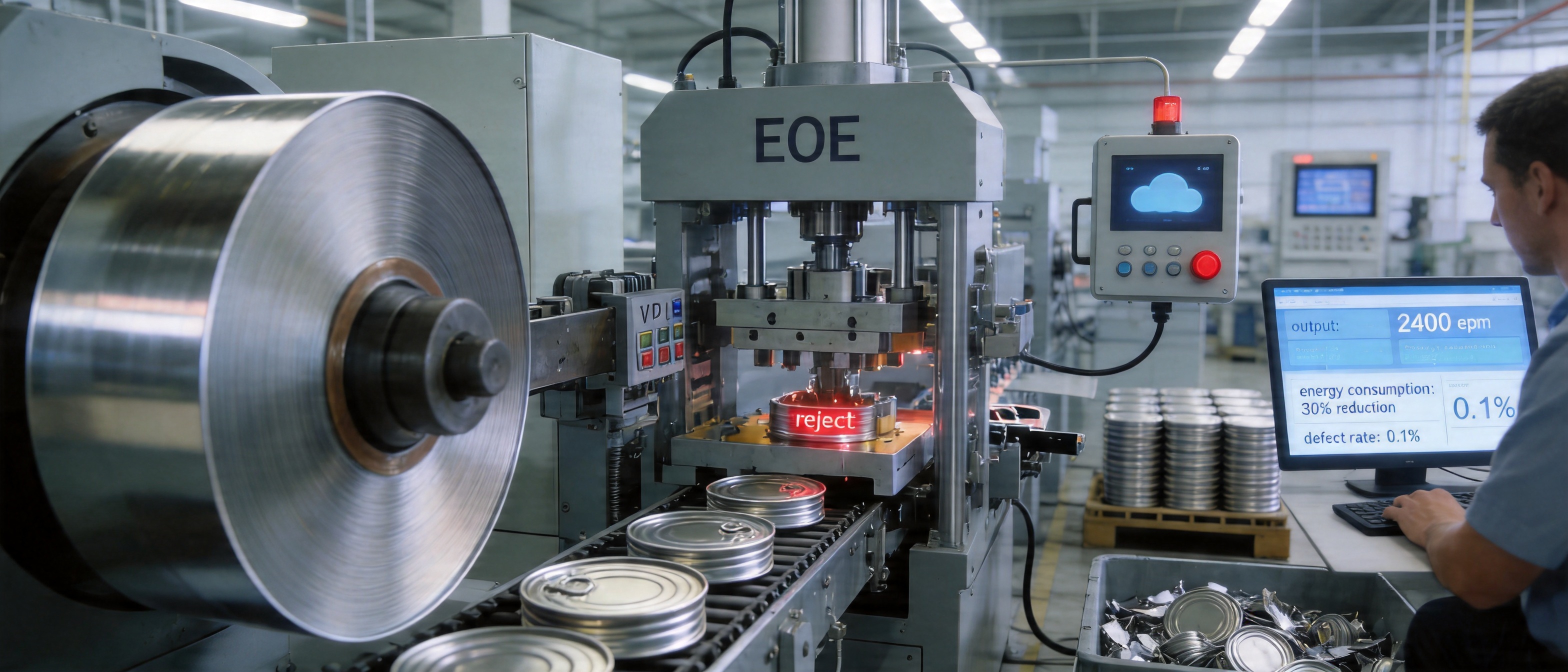 Early EOE lid production relied heavily on manual labor, with workers using hand tools to shape and trim lids. This process was slow, inconsistent, and prone to errors—limiting production volumes and increasing costs. The 1970s marked a turning point with the introduction of semi-automated machines, which reduced manual input but still required significant operator oversight. By the 2000s, fully automated EOE lines emerged, integrating computer-controlled systems to improve precision and speed. Today’s machines are equipped with Industry 4.0 technologies, such as IoT sensors and AI-powered inspection, to further enhance efficiency and quality.