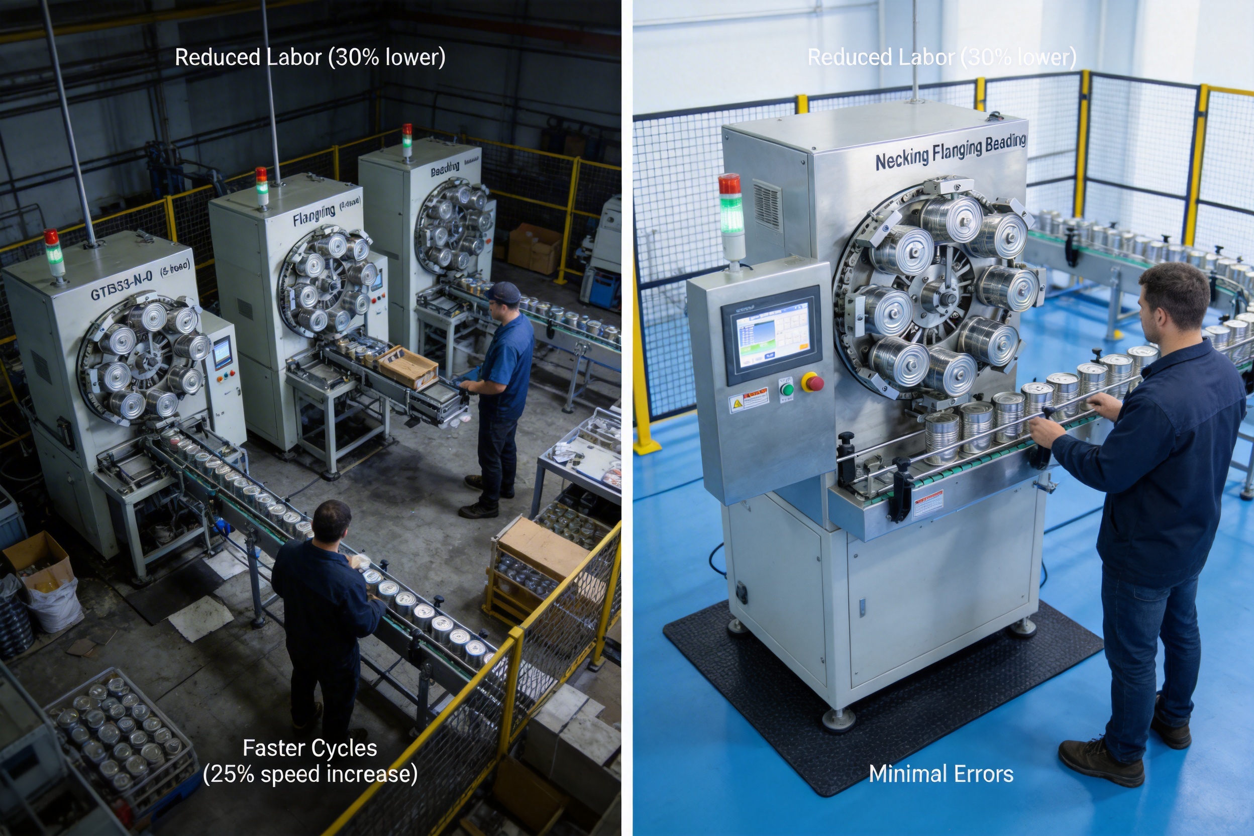Faster Production Cycles: Continuous processing from necking to beading eliminates idle time between steps, increasing overall production speed by 20-25% compared to separate machines.
