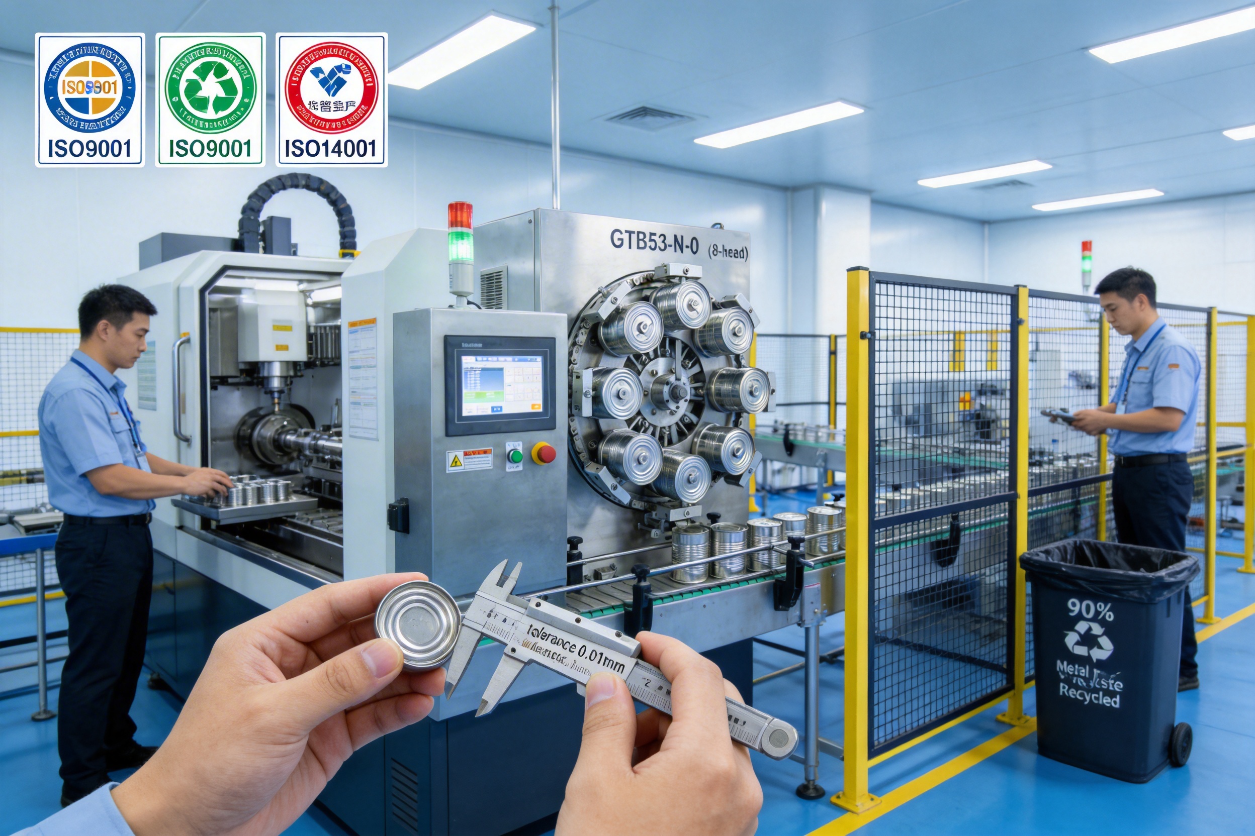 A1: The machine is designed to produce a wide range of food cans, including those for canned fruits, vegetables, soups, tuna, beans, and other perishable items. Its can size range (52-99mm diameter, 60-160mm height) covers most common food can sizes. For larger cans (Φ99-153mm), the GT3B42 series models are available.