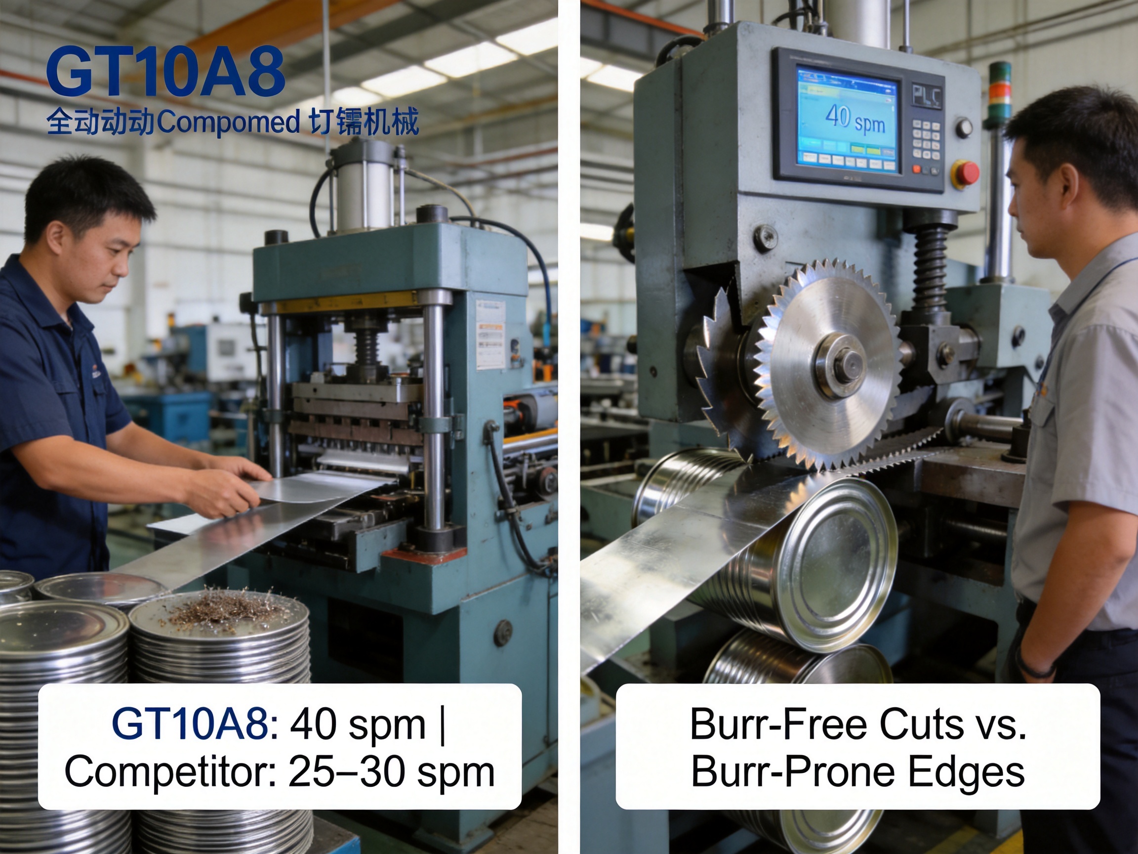 Automatic operation also boosts production efficiency. Competitors’ semi-automatic machines typically produce 25–30 sheets per minute (spm), while the GT10A8 reaches up to 40 spm—an increase of 33–60%. For a factory producing 10,000 can bodies per day, this speed difference translates to 2–3 hours of saved production time daily, or 500–750 additional can bodies per shift.