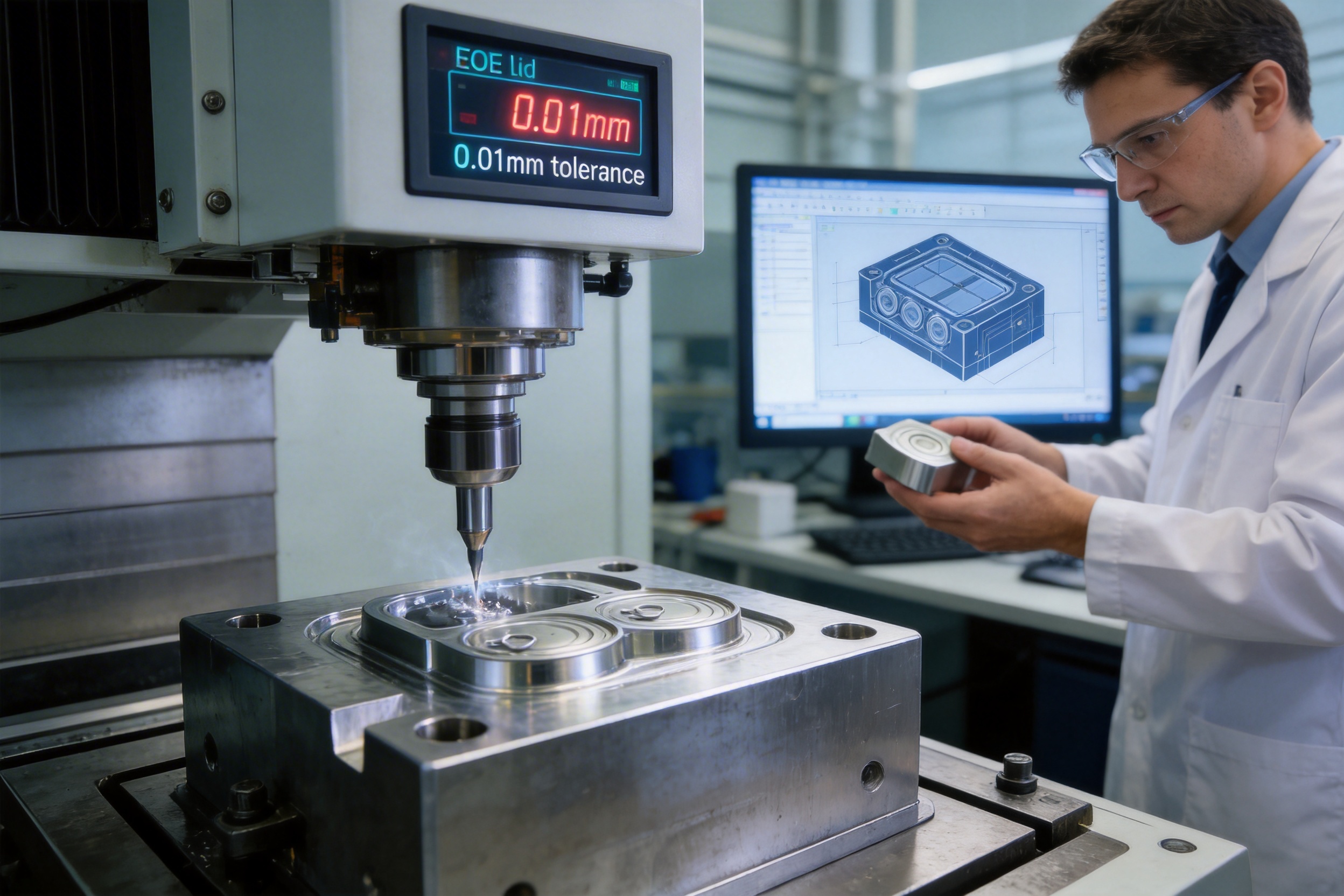 CNC (Computer Numerical Control) high-precision machining is one of the most important processes used in the manufacturing of EOE lid making machines. CNC machines are computer-controlled, which allows for extremely precise machining of components. This precision is critical for EOE lid making machines, as even small errors can lead to defects in the lids. For example, the stamping die used to form the EOE lid must be machined to a tolerance of 0.01mm to ensure that the lid is formed correctly.