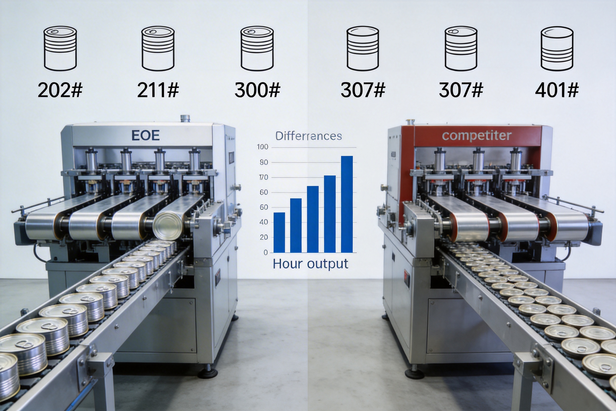 This machine supports five common can sizes: 202#, 211#, 300#, 307#, and 401#. These sizes are widely used in the food and beverage industry for products such as canned fruits, vegetables, soups, and beverages.
