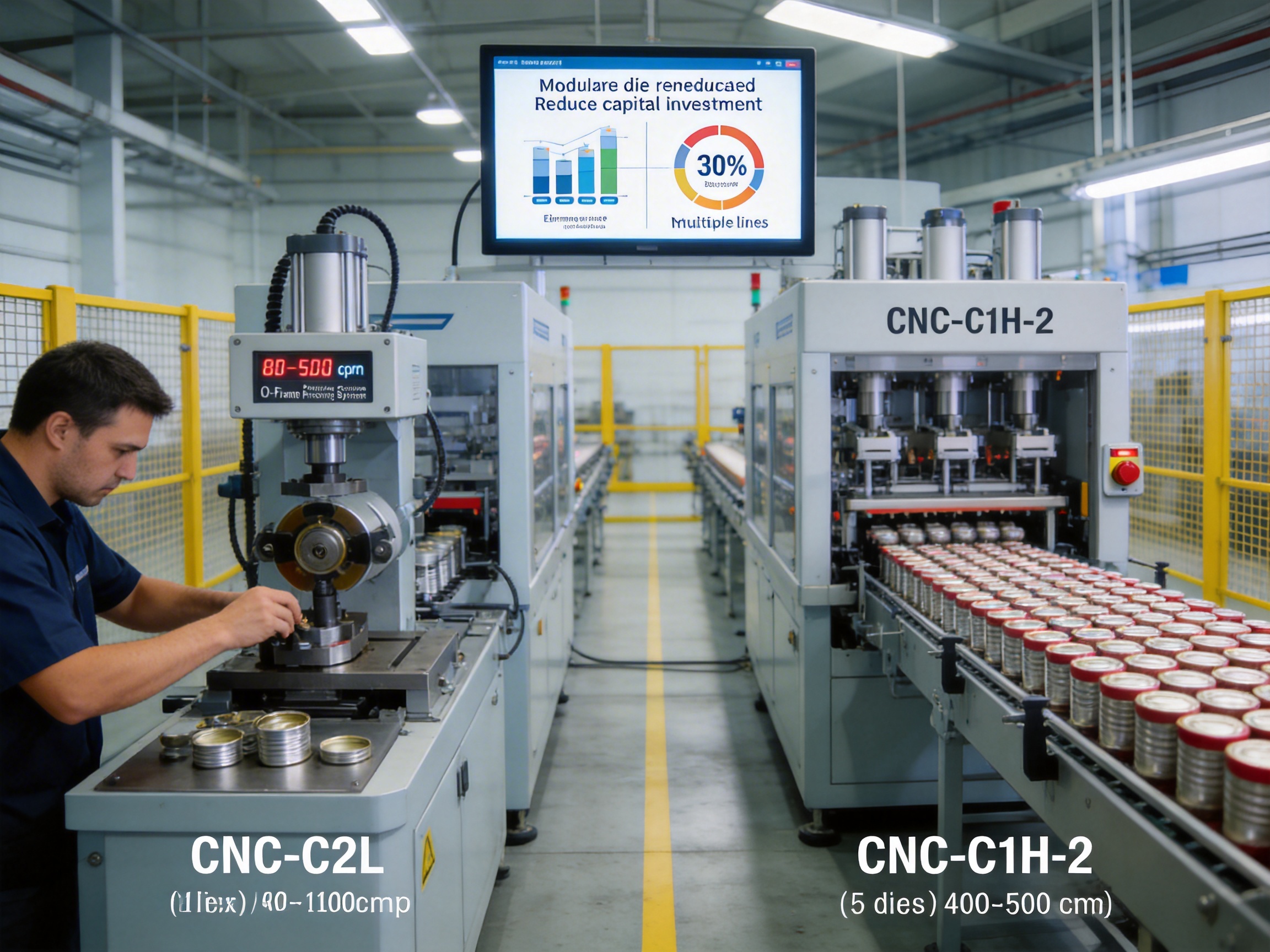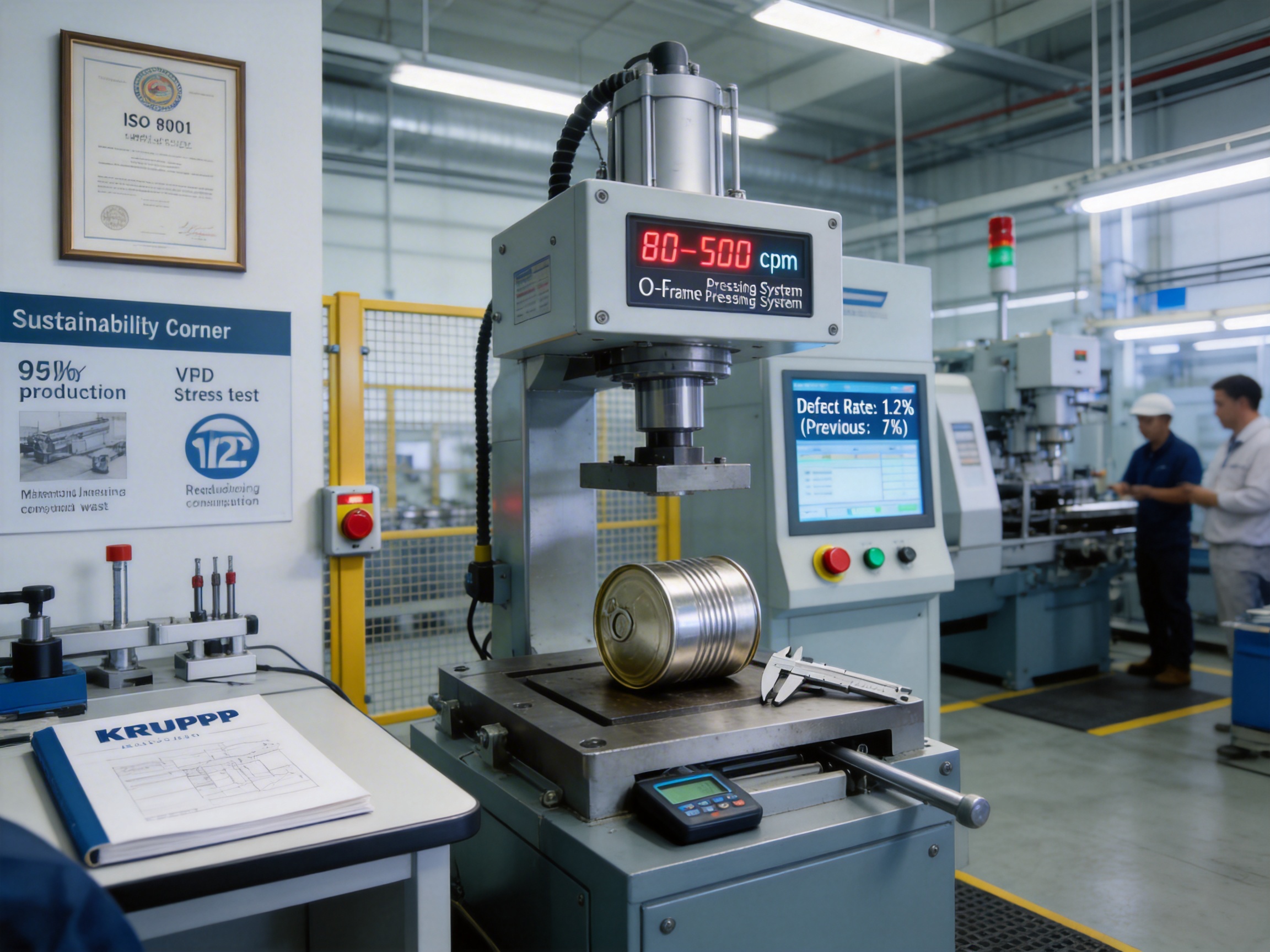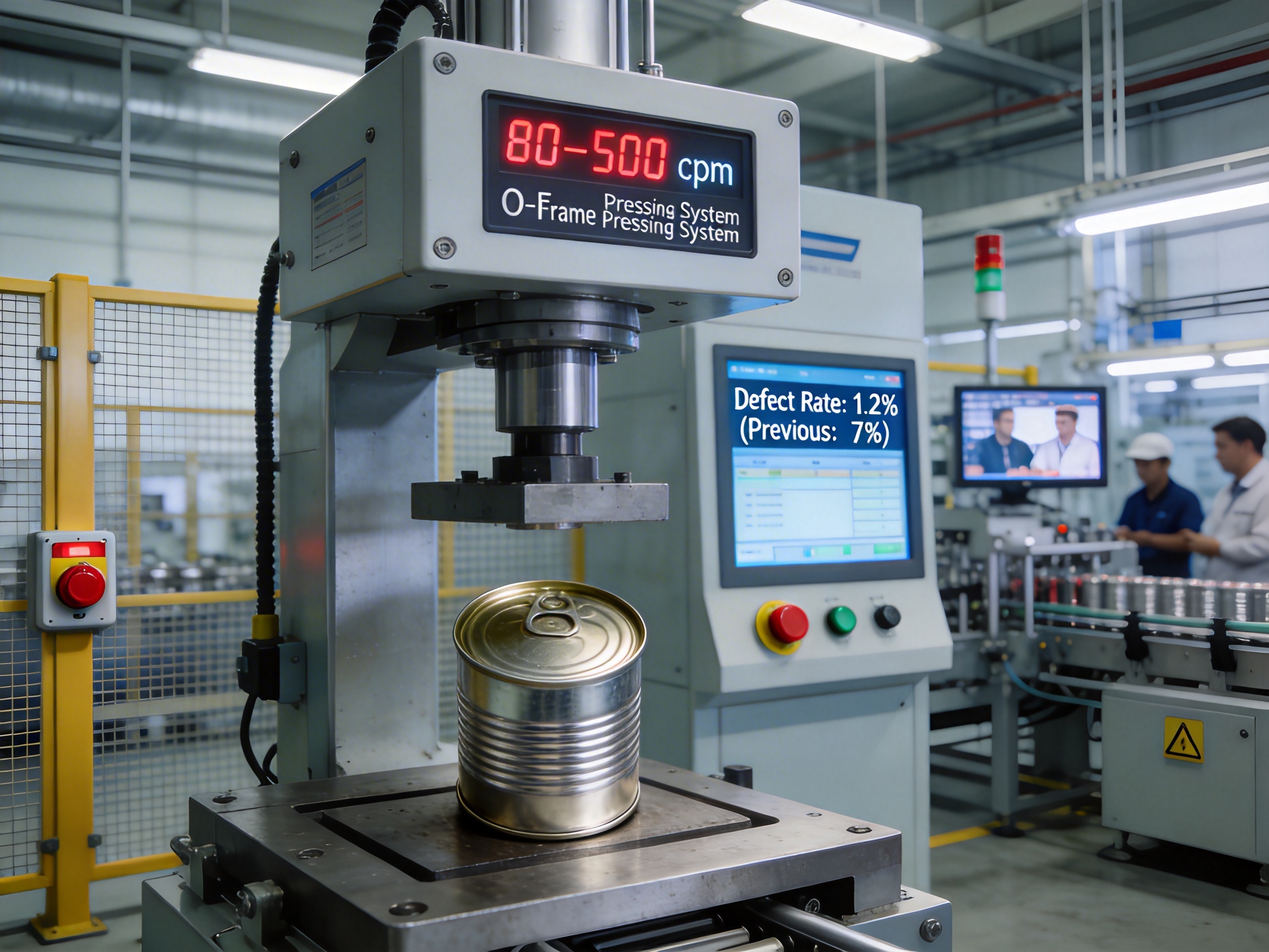 Challenge: A German beverage manufacturer was using an outdated line with a fixed speed of 120 cpm, leading to long lead times for their 330ml cans. Defect rates were 8% due to imprecise pressing, costing €20k annually in rework.