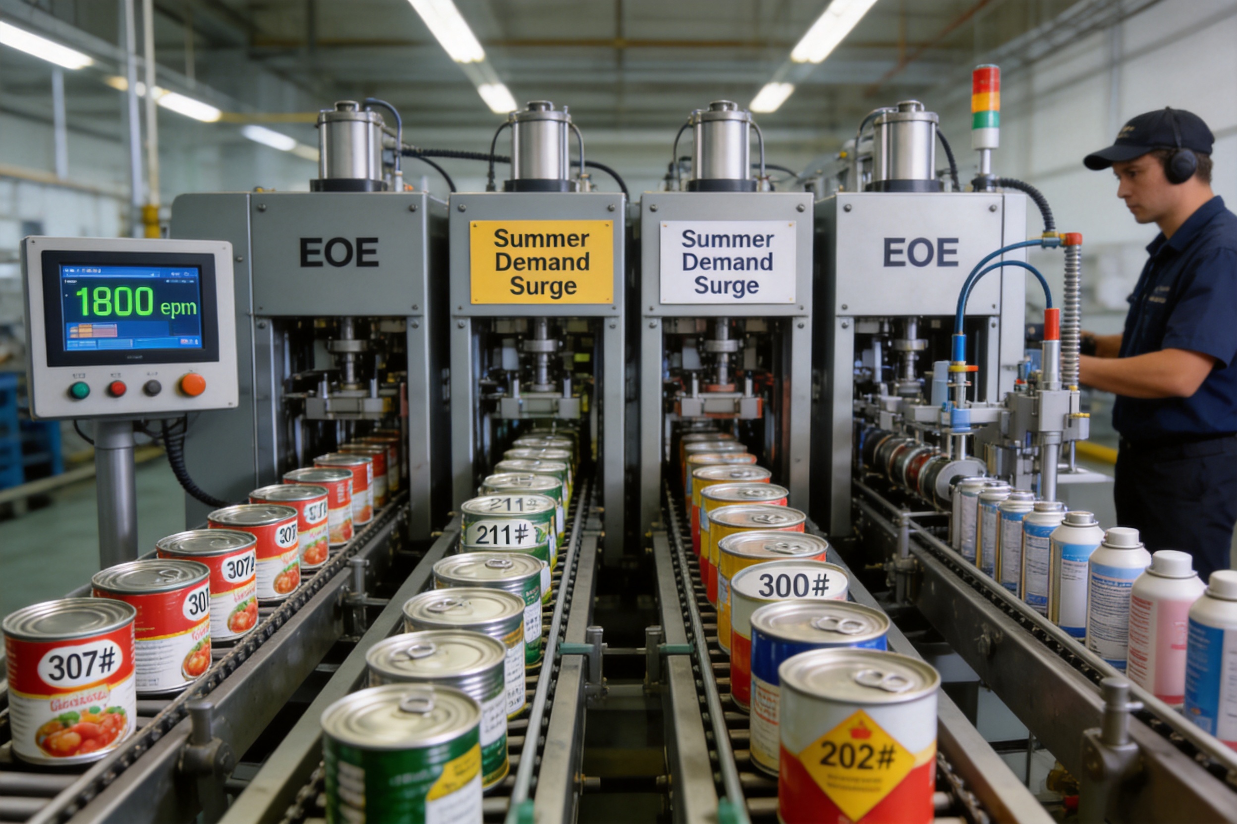 For example, a snack food manufacturer can use the same machine to produce 202# lids for small chip cans and 307# lids for larger soup cans, improving operational flexibility.