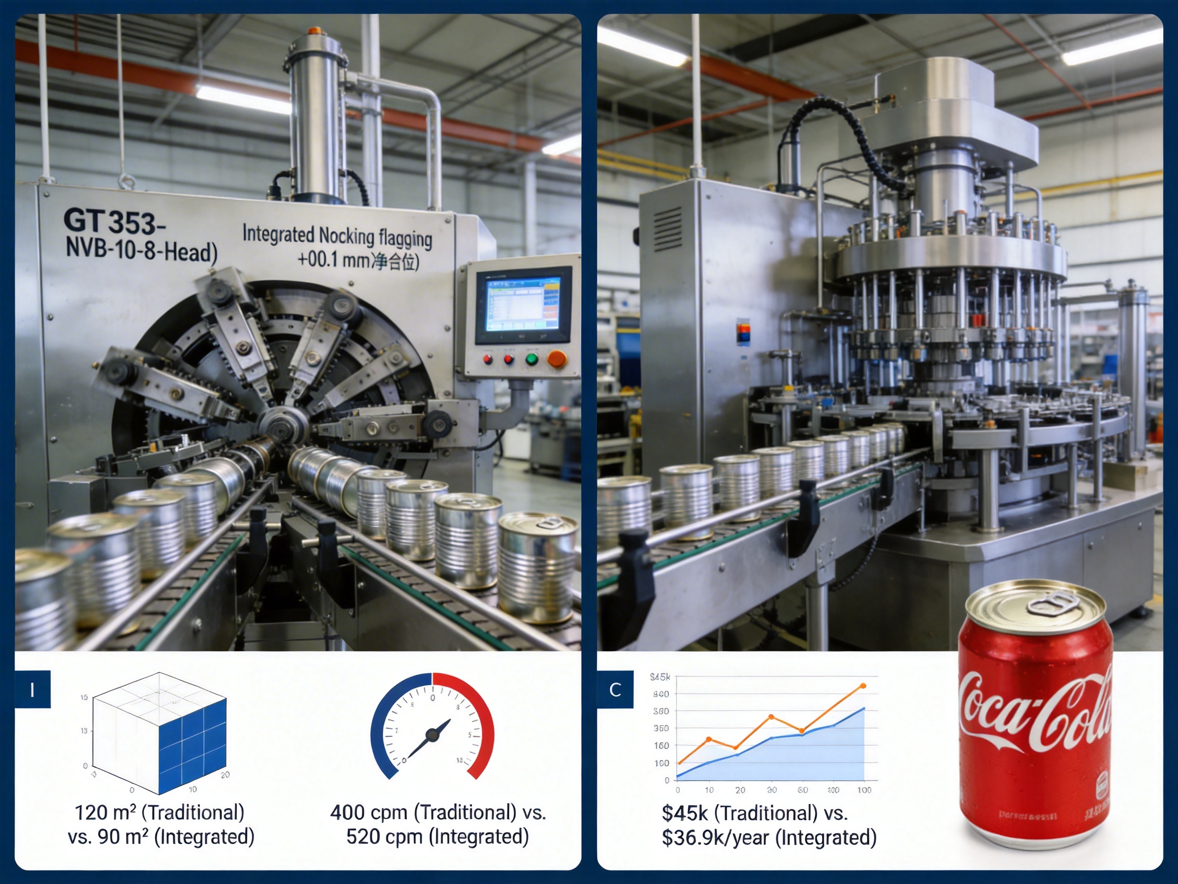 A leading European manufacturer of food and beverage cans was facing challenges with its outdated production line. The line used three separate machines for necking, flanging, and beading, which occupied 20% more floor space than necessary and had a downtime rate of 15% due to frequent changeovers and maintenance issues. The manufacturer needed to increase its production capacity to meet the growing demand for aluminum cans (projected to grow by 8% annually in Europe).