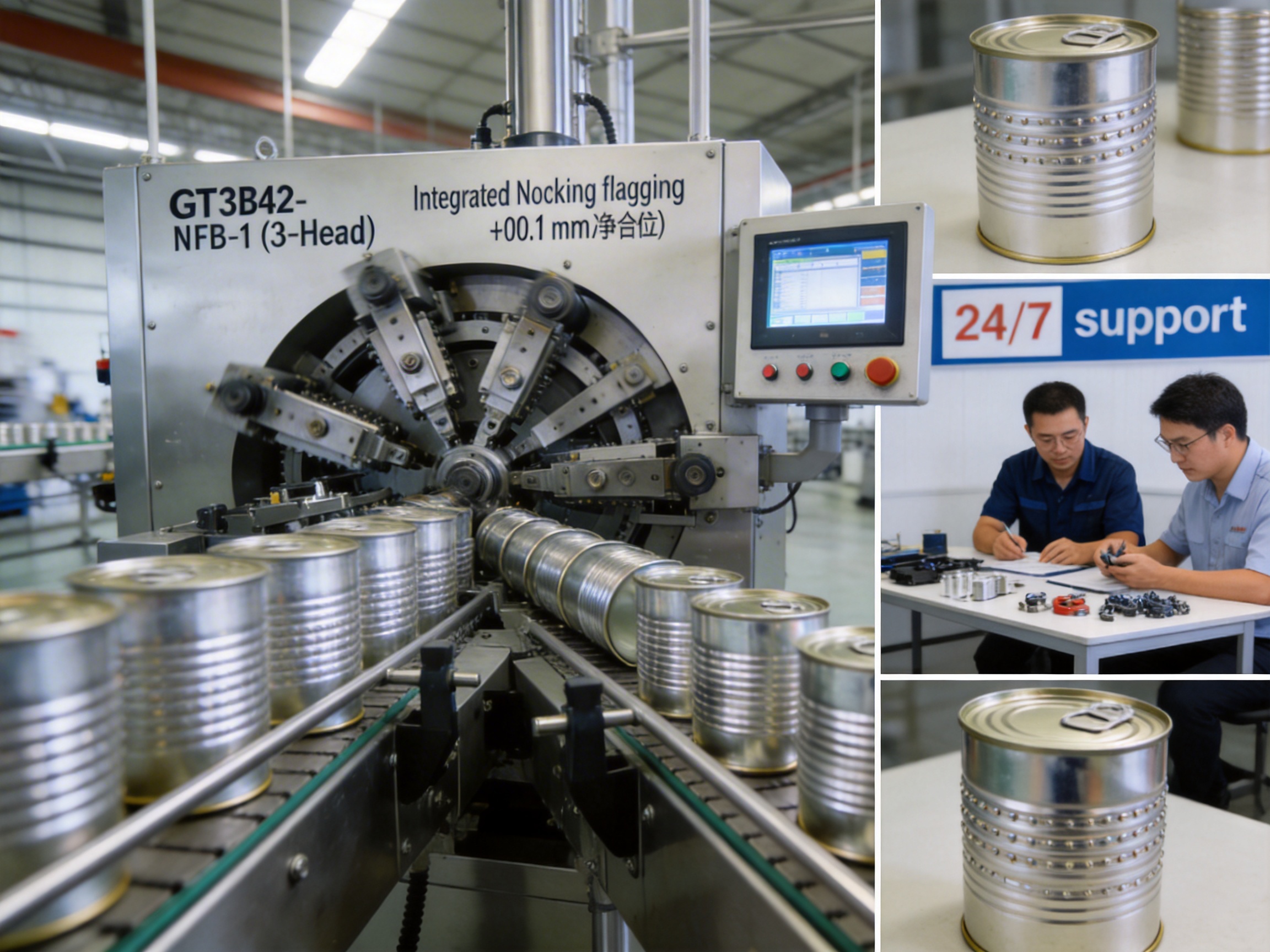 The facility switched to the GT3B42-NFB-1 (3-Head) machine, which is specifically designed for large can sizes. The machine’s modular design and robust construction reduced the jam rate to 1–2 times per shift, while the adjustable settings allowed the facility to handle multiple can sizes (Φ99 mm, Φ126 mm, Φ153 mm) without changeovers. The machine’s output capacity (20–100 cpm) increased the facility’s production by 25% (from 80 to 100 cpm). The manufacturer also provided comprehensive after-sales support, including installation, commissioning, and technical training, which was completed in 3 days—significantly faster than the competitor’s 7-day timeline.