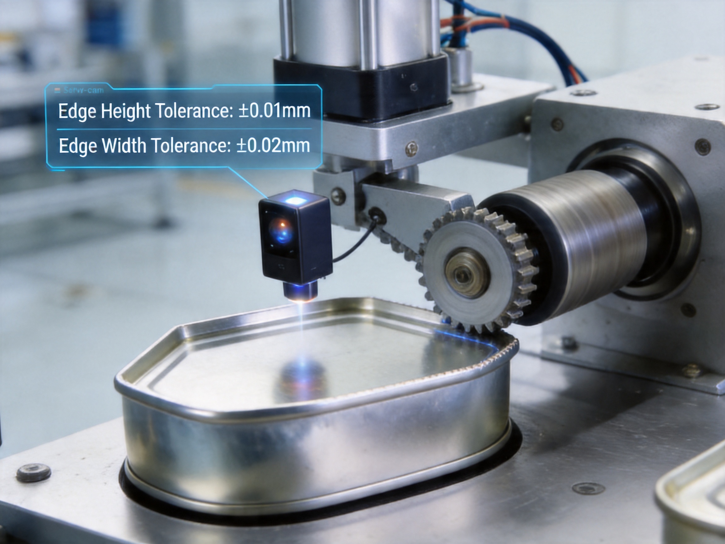 The most critical challenge in irregular lid processing is precise edge following—ensuring that the sealing rollers maintain consistent pressure and position along the non-circular edge. The machine solves this with a servo-cam integration system that combines the dynamic control of servo motors with the mechanical precision of cam mechanisms.