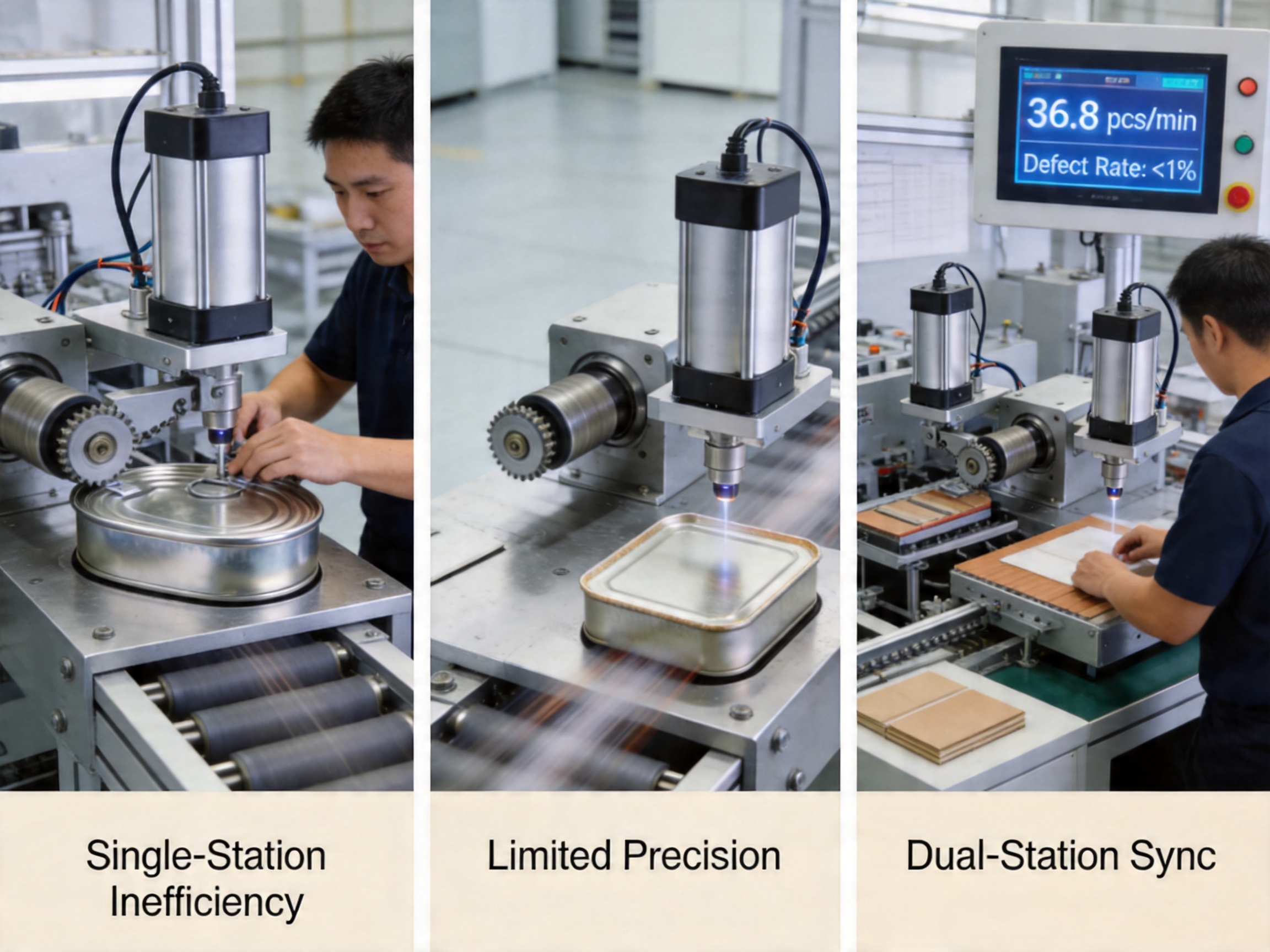 The independent motor control also allows for customization of each station. For example, one station can process oval lids while the other processes square lids, reducing changeover time from hours to minutes. This versatility is a game-changer for manufacturers with multiple product lines.