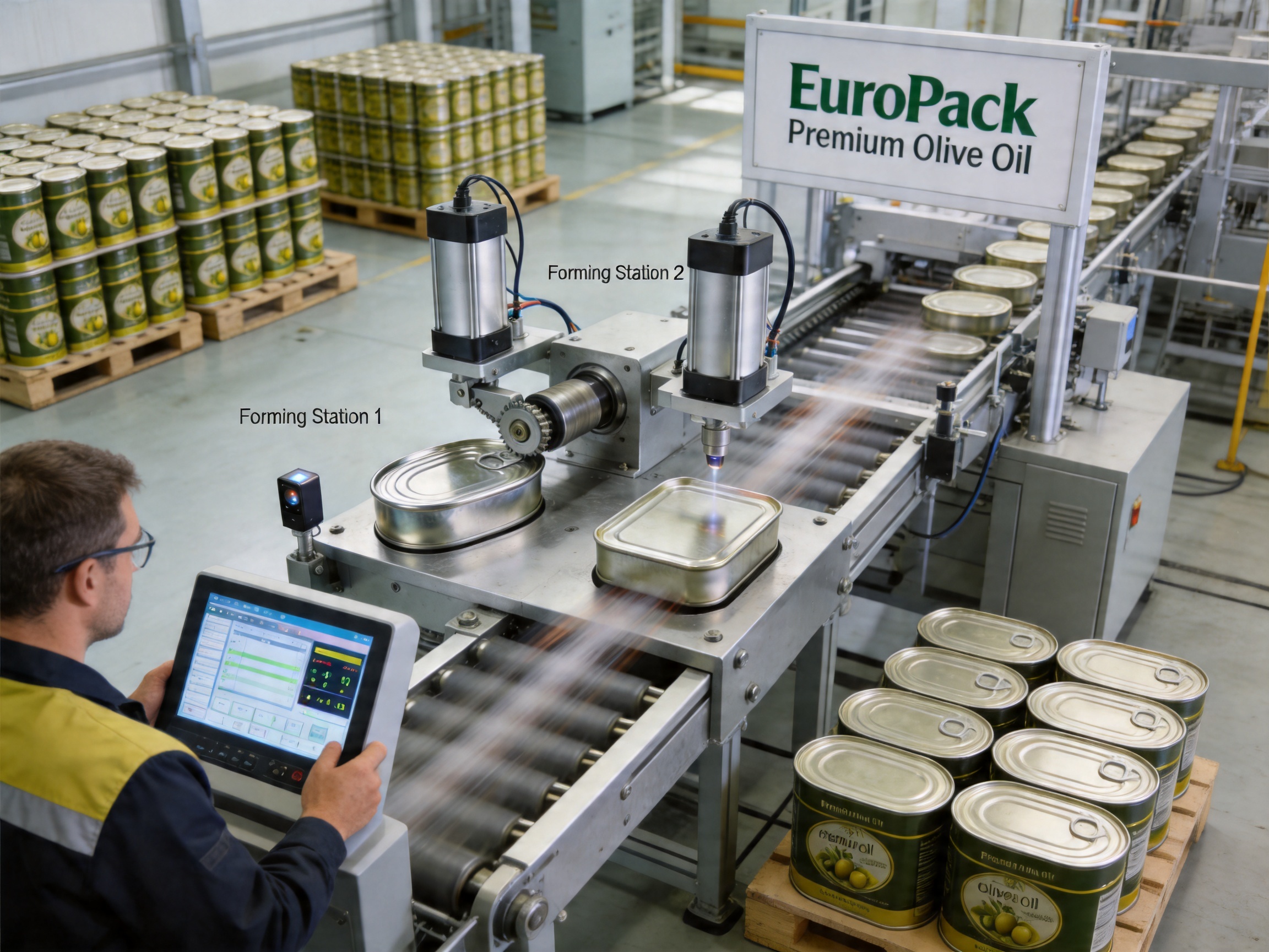 To illustrate the machine’s real-world impact, let’s look at a case study of a European food packaging company—let’s call it EuroPack—specializing in premium olive oil cans. EuroPack had been using a competitor’s irregular lid machine for 2 years, but it faced several challenges: inconsistent edge height leading to 5% defect rate, slow production speed (10 lids per minute), and long changeover times (6 hours between oval and square lids).