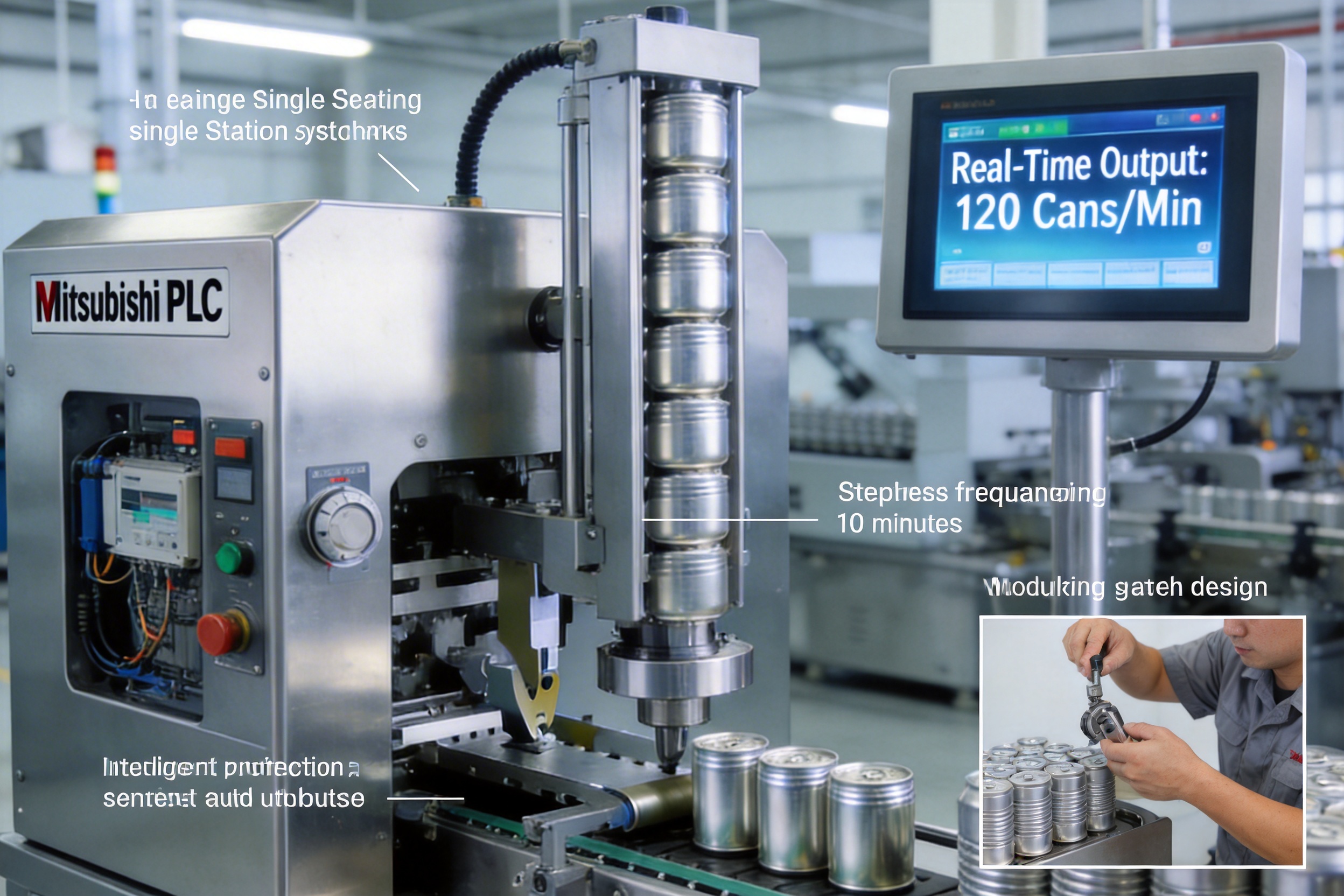 Most competitor machines lack advanced protection features, relying on manual monitoring to prevent jams or damage. The seaming single station machine’s intelligent protection system uses sensors to detect can stacks at the outlet, triggering an automatic shutdown to prevent equipment damage and can waste. It also reduces the main motor speed when no cans are present, cutting energy consumption by up to 15% during idle periods. This system not only improves operational safety but also extends the lifespan of critical components, reducing long-term maintenance costs.