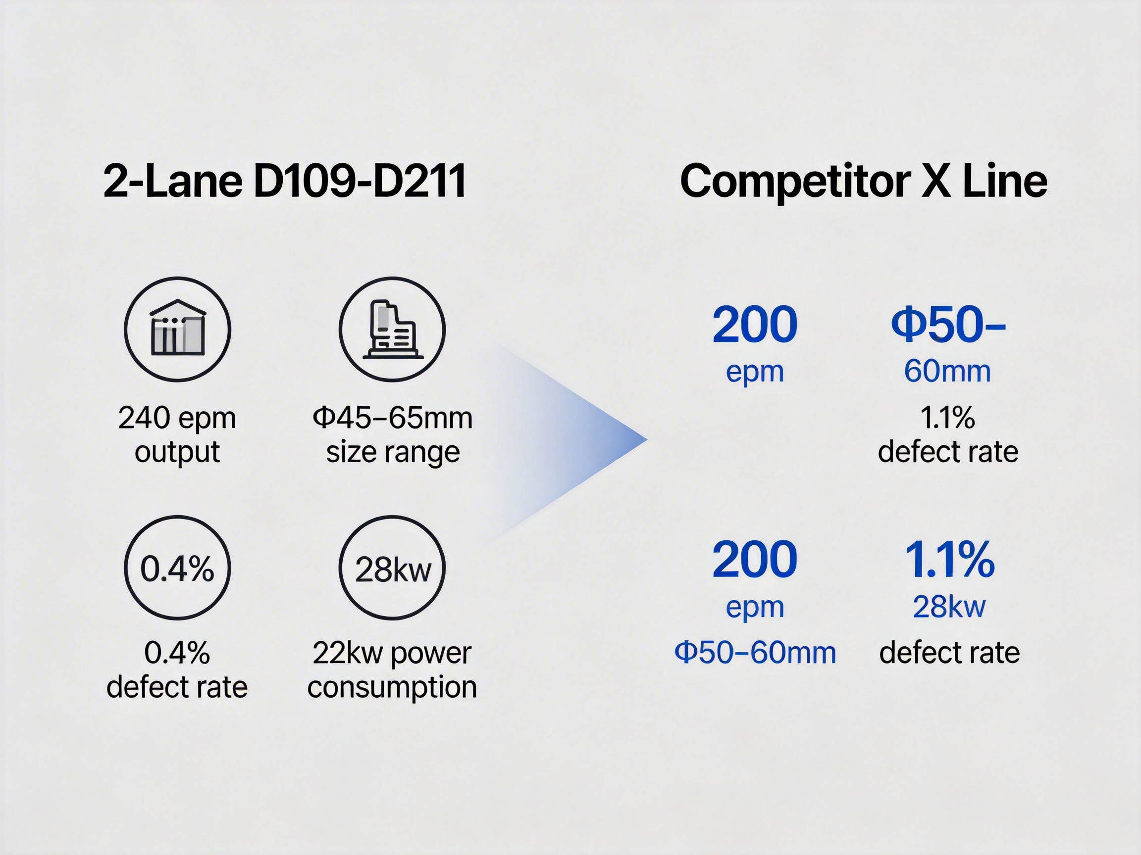 | Specification | 2-Lane D109-D211 Line | Competitor X Dual-Lane Line |